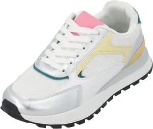 Sneaker Damen Delhera - modische Turnschuhe im sportlichen Look - elegant und bequem - vielseitige kombinierbar Weiß/Gelb/Pink UK3,5 - EU36