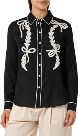 Damen Gestickte Satinhemd Chips Bluse, Zdg_Schwarz/Butter, 34