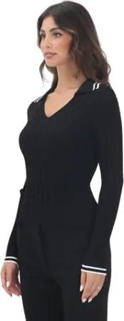 Schwarzer Pullover mit V-Ausschnitt für Damen mit schwarzen Streifen, Schwarz , Medium
