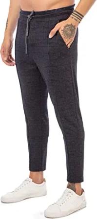 Chino-Hose für Herren Freizeithose kariert mit Gummibund Jogg-Pants Casual Dunkelgrau L