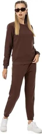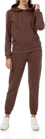 Damen Freizeitanzug Jogginganzug Hose Sweatshirt Premium Basic Braun XS