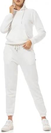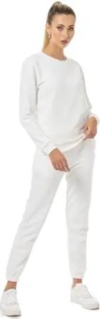 Damen Freizeitanzug Jogginganzug Hose Sweatshirt Premium Basic Weiß S