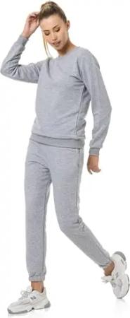 Damen Freizeitanzug Jogginganzug Hose Sweatshirt Premium Basic Grau-Melange XXL