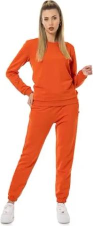 Damen Freizeitanzug Jogginganzug Hose Sweatshirt Premium Basic Orange XS