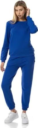 Damen Freizeitanzug Jogginganzug Hose Sweatshirt Premium Basic Saxeblau L