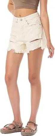 Damen High Waist Jeans Shorts Kurze Hose Beige W26
