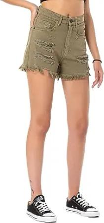 Damen High Waist Jeans Shorts Kurze Hose Khaki W28