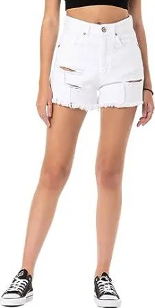 Damen High Waist Jeans Shorts Kurze Hose Weiß W27