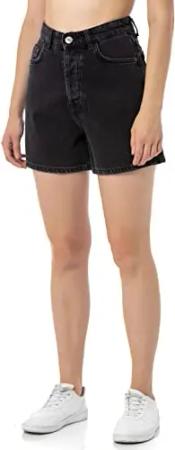 Damen Jeans Shorts Kurze Hose Bermuda Sommer Jeansshorts High Waist W25 Schwarz