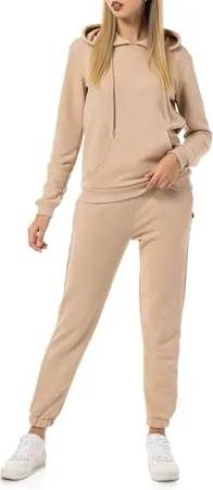 Damen Jogginganzug Bequemer Zweiteiler mit Hoodie und Jogginghose Lässiger Freizeitanzug für Sport und Alltag Beige XL