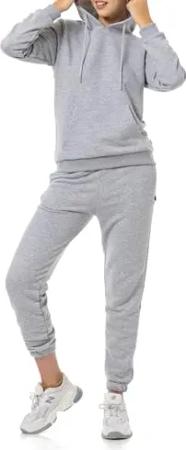 Damen Jogginganzug Bequemer Zweiteiler mit Hoodie und Jogginghose Lässiger Freizeitanzug für Sport und Alltag Grau-Melange S