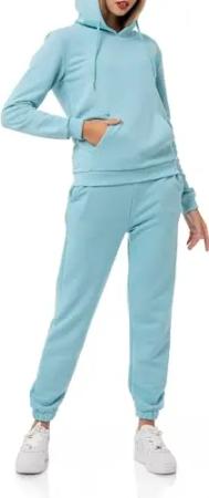 Damen Freizeitanzug Jogginganzug Hose Sweatshirt Premium Basic Hellblau XS