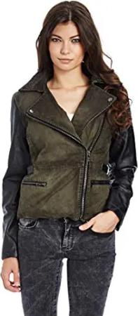 Damen Übergangsjacke Kunst- Lederjacke Twin-Part Biker Kunstlederjacke R42453 M Khaki