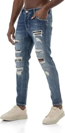 by Cipo & Baxx RB-157 Jeans Distressed Style Helle Waschung Herren Hose W34 L30 Blau