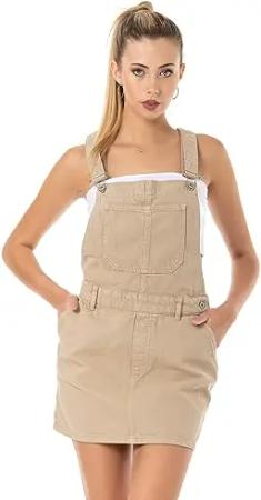 Latzkleid Damen Jeansrock Denim Overall Baumwolle Beige XS