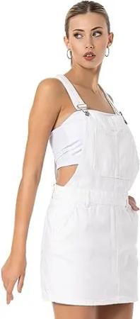 Latzkleid Damen Jeansrock Denim Overall Baumwolle Weiß M
