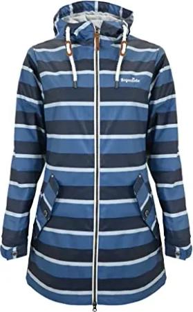 Damen Regenmantel Friesennerz gestreift navy Regenjacke mit tailliertem Schnitt und Taillenregulierung, Größe:46