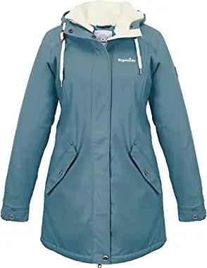 Damen Regenmantel Friesennerz mit Teddyfleece gefüttert, Größe:36, Farbe:petrolblau