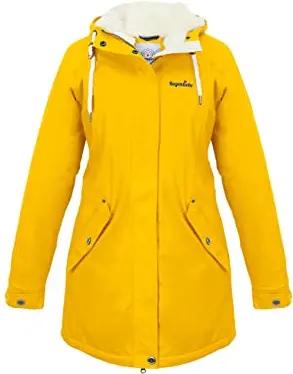 Damen Regenmantel Friesennerz mit Teddyfleece gefüttert, Größe:42, Farbe:gelb