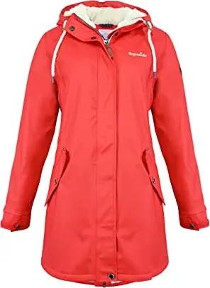 Damen Regenmantel Friesennerz mit Teddyfleece gefüttert, Größe:50, Farbe:rot