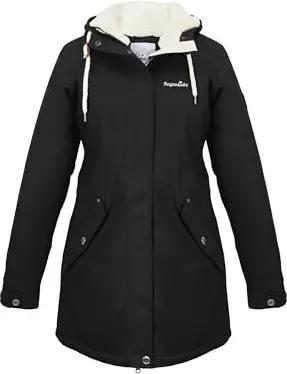 Damen Regenmantel wasserdicht Friesennerz mit Teddyfleece gefüttert, Größe:52, Farbe:schwarz