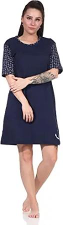 Damen Kurzarm Nachthemd in maritimer Look mit Anker Motiv - 112 214 10 712, Farbe:Navy, Größe:40-42