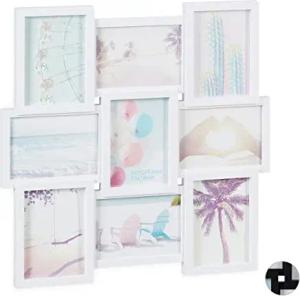 Bilderrahmen Collage, für 9 Bilder, Hoch- oder Querformat, Wand, Kunststoffrahmen, HxB: 54 x 54 cm, weiß