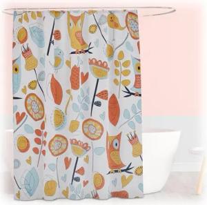 Duschvorhang mit Eulen, Bad Vorhang 180x200, Anti-Schimmel, waschbar, 12 Ringe, Badewannenvorhang, Mehrfarbig