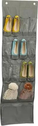Schuhorganizer, 15 Fächer, Tür-Schuhregal hängend, HBT: 158 x 47,5 x 5 cm, Schuhaufbewahrung, grau/transparent