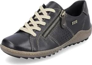 Damen Sneaker R1437, Frauen Schnürschuhe,lose Einlage,wasserabweisend,remonteTEX,straßenschuhe,Strassenschuhe,schwarz Kombi (01),38 EU
