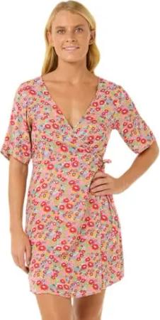 Las Dalias Ditsy Wrap Short Sleeve Short Dress M