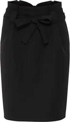 IXCAISY Damen Rock Midirock kurzer Rock mit Bindeband Gürtelschlaufen Ziernähten leicht elastisch Regular fit, Größe:38, Farbe:Black (194008)