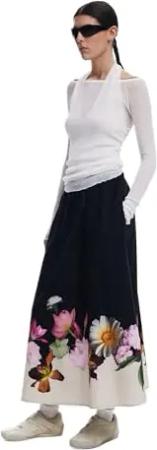Damen Woman Woven Long Skirt, Schwarz, S EU