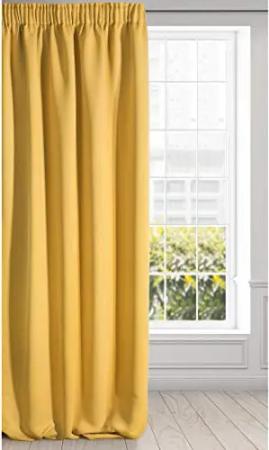 Logan Vorhang Blickdicht, Blackout, Satin Verdunkelungsvorhang mit Kräuselband-1 STK. Elegant, Glatt, Einfarbig, Wohnzimmer, Schlafzimmer, Senfgelb, 135x270 cm