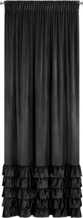 Carli Samtvorhang mit Rüsche, Velvet Vorhang mit Ösen -1 STK. Vorhang Blickdicht, Verdunkelung, Exklusiver Vorhang für Wohnzimmer, Schlafzimmer, 140x250 cm, Schwarz