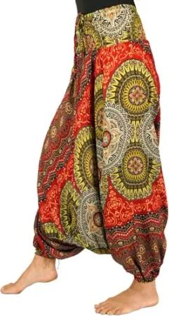 GURU SHOP Afghani Hose, Overall, Jumpsuit, Haremshose, Pluderhose, Pumphose, Aladinhose - Rot/gelb, Damen, Synthetisch