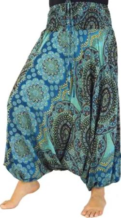 GURU SHOP Afghani Hose, Overall, Jumpsuit, Haremshose, Pluderhose, Pumphose, Aladinhose - Türkis/blau, Damen, Synthetisch
