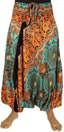 GURU SHOP Afghani Hose, Overall, Jumpsuit, Haremshose, Pluderhose, Pumphose, Aladinhose - Türkis/orange, Damen