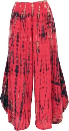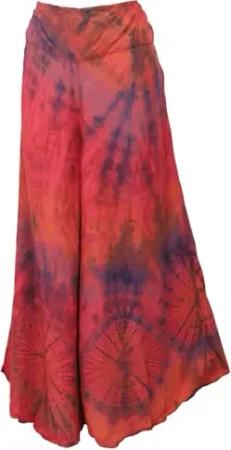 GURU SHOP Batik Palazzohose, Hosenrock, Batikhose, Schlaghose, Hippie Goa Hose - Rot, Damen