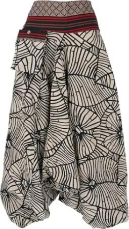 GURU SHOP Bedruckte Haremshose, Pluderhose mit Breitem Gewebtem Bund - Modell 9, Damen, Baumwolle
