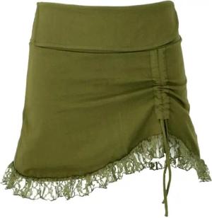 GURU SHOP Boho Minirock mit Spitze, Superkurzer Pixirock, Festivalrock zum Raffen - Olive, Damen, Size:S
