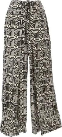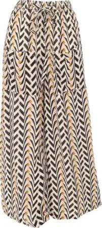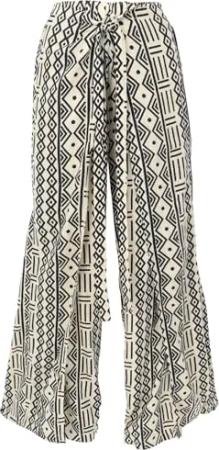 GURU SHOP Palazzohose mit African Print, Offene Boho Sommerhose, Hosenrock- Beige/schwarz, Damen, Size:S