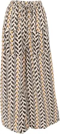 GURU SHOP Palazzohose mit African Print, Offene Boho Sommerhose, Hosenrock- Beige/schwarz, Damen, Synthetisch, Size:S