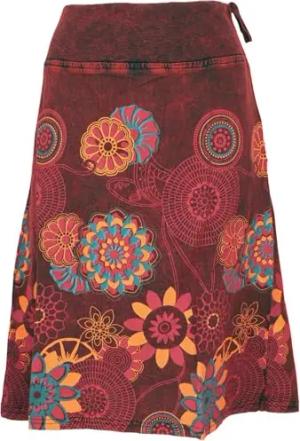 GURU SHOP Knielanger Rock Boho Chic, Farbenfroher Retro Mandala Baumwollrock - Rot, Damen, Baumwolle, Size:XL