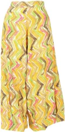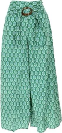 GURU SHOP Luftige Sommerhose mit Kokosschnalle, Boho Palazzohose, Weite Baumwollhose - Grün/gelb, Damen, Size:S