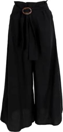 GURU SHOP Luftige Sommerhose mit Kokosschnalle, Boho Palazzohose, Weite Baumwollhose - Schwarz, Damen, Baumwolle, Size:M