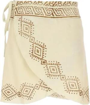 GURU SHOP Natürlicher Goa Minirock, Bedruckter Ethno Wickelrock - Hellbeige, Damen, Size:S