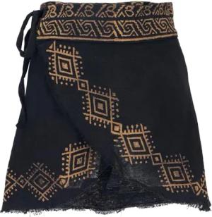 GURU SHOP Natürlicher Goa Minirock, Bedruckter Ethno Wickelrock - Schwarz, Damen, Size:S