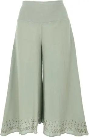 GURU SHOP Palazzohose, 3/4 Hosenrock, Bedruckte Natürliche Boho Schlaghose, Sommerhose - Salbei, Damen, Size:S