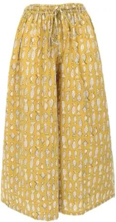 GURU SHOP Palazzohose, Hosenrock, Baumwollhose mit Handgefertigtem Druck - Kurkuma, Damen, Size:S